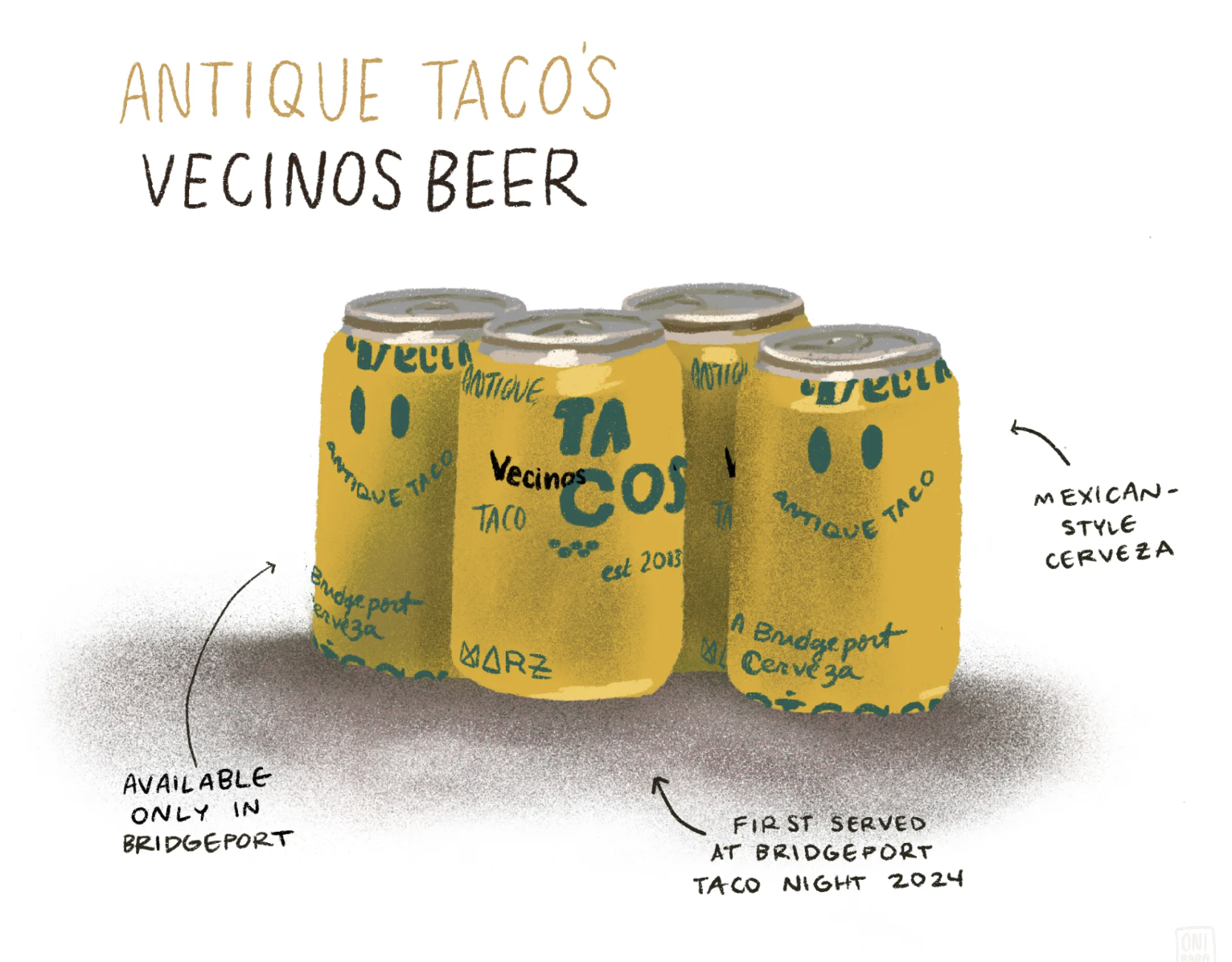 Vecinos beer at Antique Taco Bridgeport